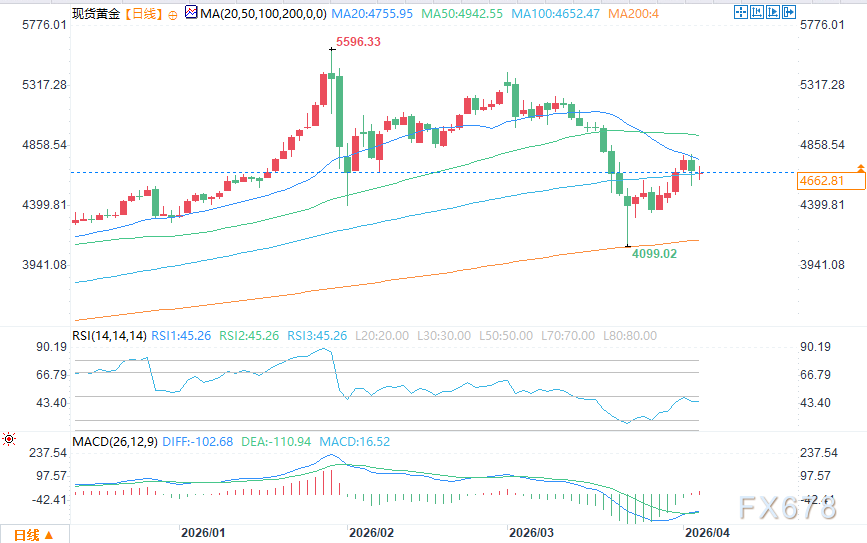 周一(4月6日)美盘时段,随着美国总统特朗普对伊朗“地狱”最后通牒的周二截止期限日益临近,国际金价周一小幅走低,盘中报4659.41美元/盎司,跌幅0.35%。